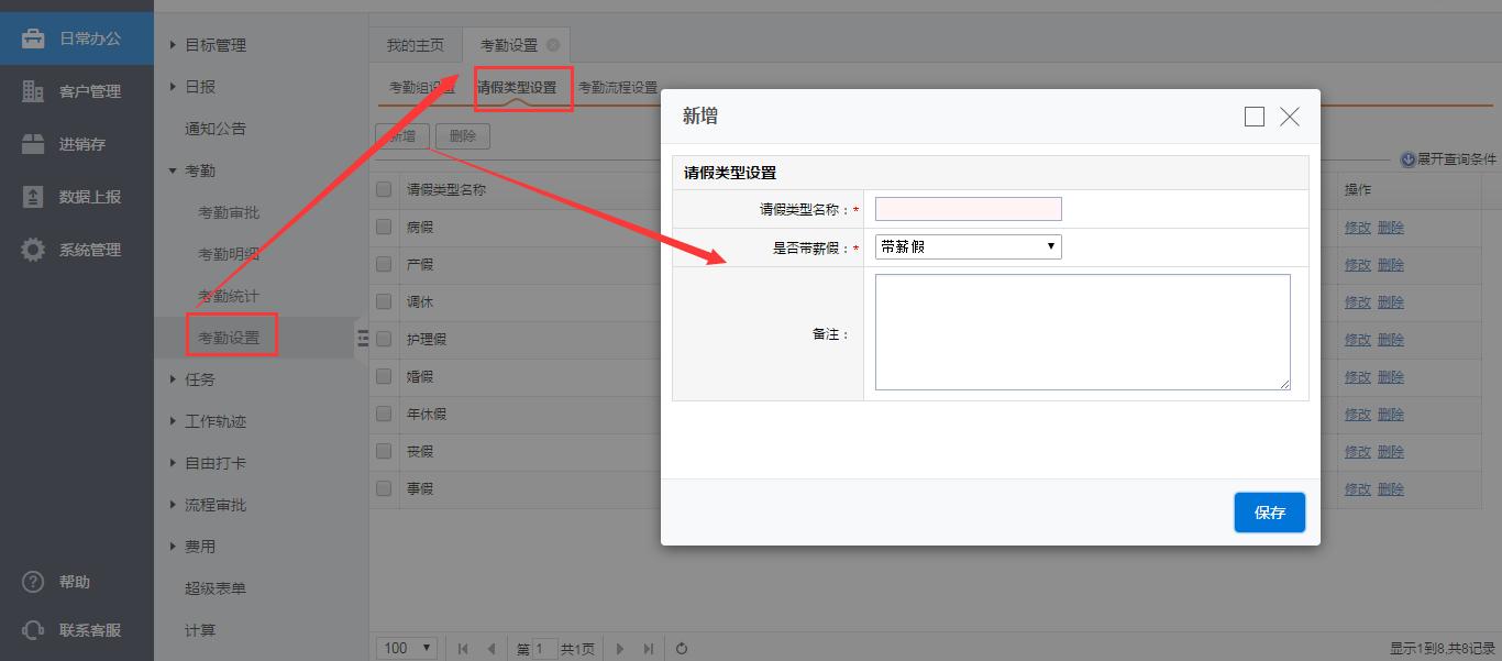 软件支持请假类型自定义,请假类型在员工进行请假申请时选择使用,管理员可以根据公司情况设定属于自己的请假类型,可修改已存在的请假类型,也可以将不需要的请假类型删除