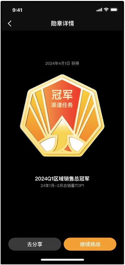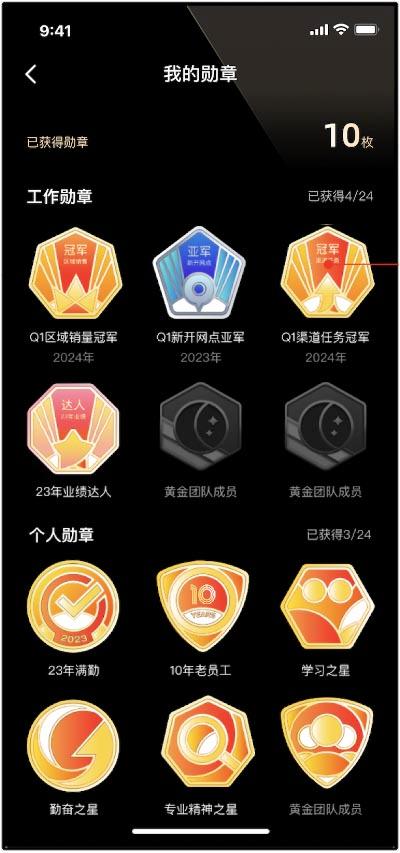 勤策建立勋章体系,区分为工作勋章和个人勋章。打开勤策,即可见勋章,而勋章不仅DSR可见,其他人员同时可见。在日报互动中,也同时展示勋章。