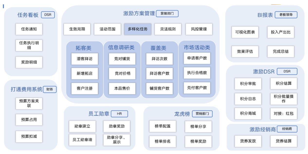 比如财务要和费控系统打通,保证你的预算不超标,HR肯定要去关注企业文化的建议;对于管理者来说,他需要清晰的综合报表,知道每一项激励用钱花出去了,效果如何等等。